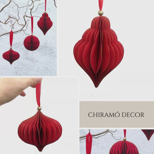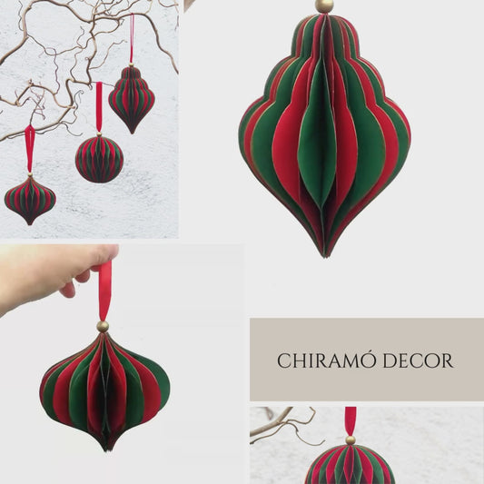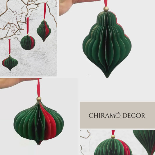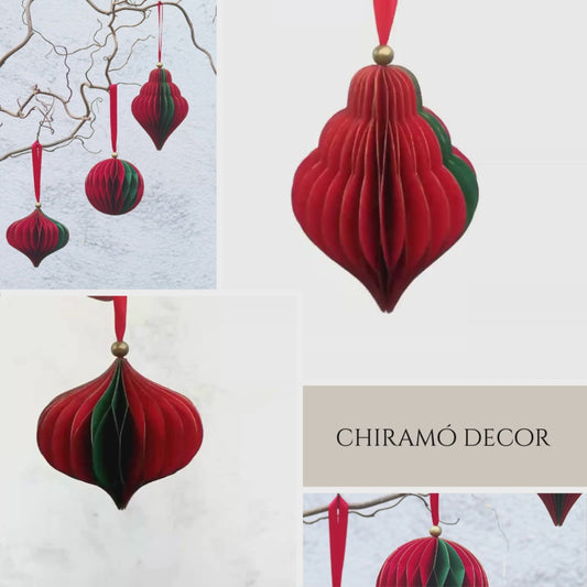 Set 3 Globuri de Crăciun Roşu - Verde | Chiramó Decor