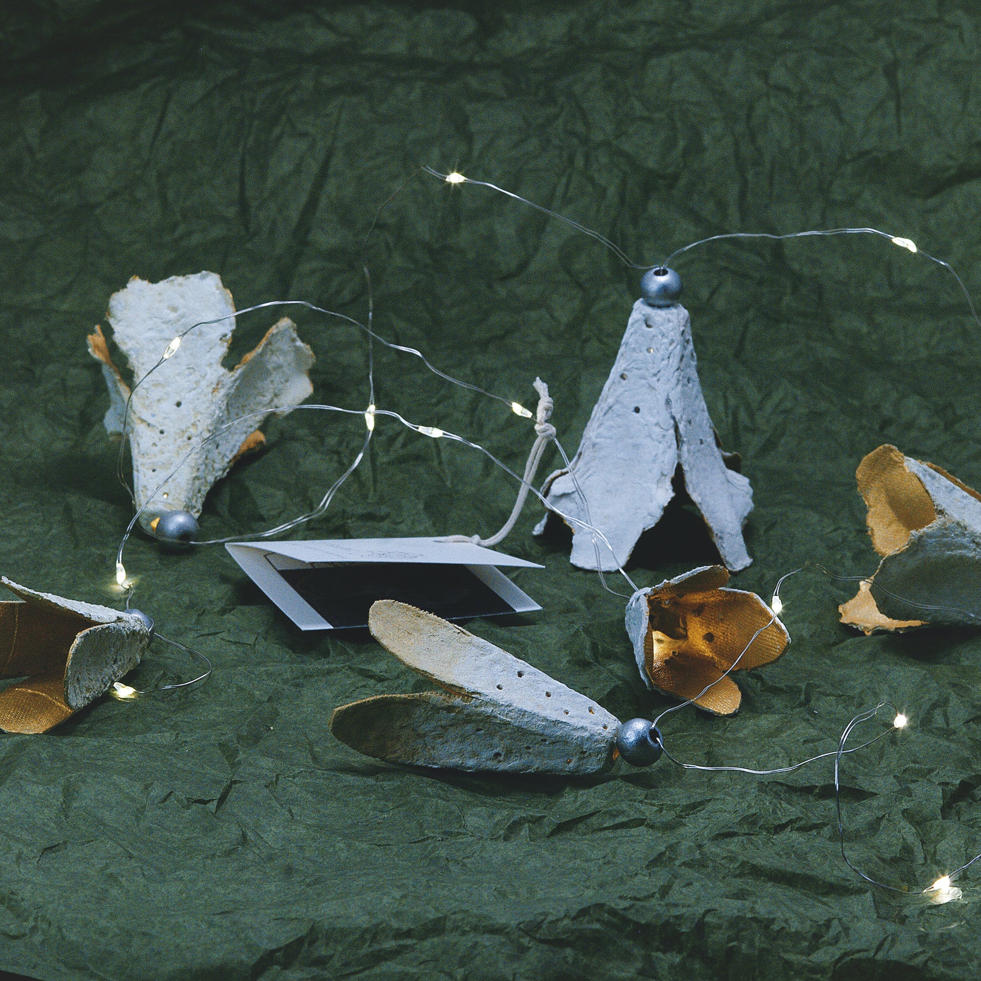 Adaugă un strop de magie eco-friendly în decorul tău cu această ghirlandă luminoasă realizată manual din cofraje de ouă reciclate!